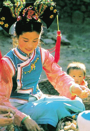 “丰收节”。“五谷丰登大有年,家家欢庆笑开颜。杀猪推碾磨新面,整备丰收第一餐。”这首诗描写的是满乡欢庆“丰收节”的热闹场面。“丰收节”是满族人秋季举行的一个隆重节日。秋风起,五谷泛黄,开镰收割之际,满乡要举行庆丰收的仪式:全村家家杀猪、烀方子肉,磨豆子做豆腐,煮豆饭,蒸粘糕,此习俗谓之“上场豆腐下场糕”,寓意五谷丰登、步步登高。