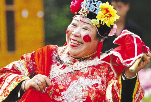 金秋时节,老人们跳起满族秧歌庆祝丰收。 资料图片