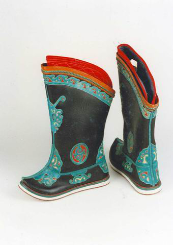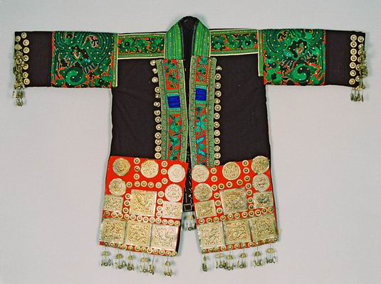东北、内蒙古地区气候寒冷,少数民族服饰带有高寒地区的文化特征,形制多为袍服。袍身长者及踝,短者至膝。使用材料一般冬季用皮毛棉毡,夏季用丝布绸麻。