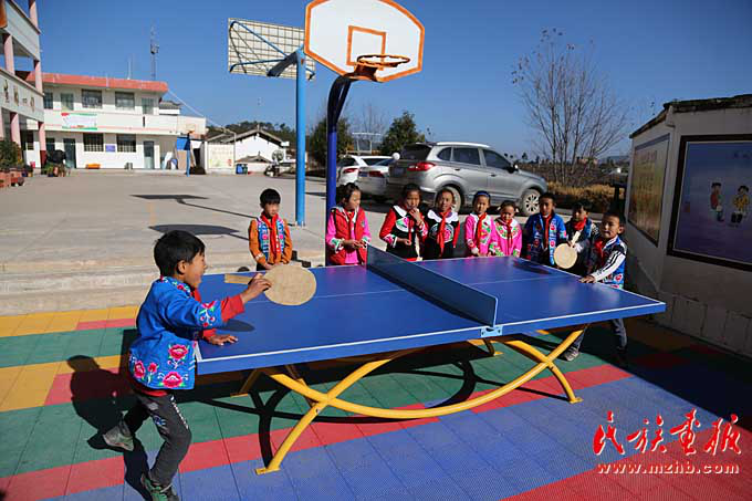 腊湾民族小学是牟定县海拔最高的小学,这里环境艰苦,但是来这里的老师都坚持了下来。明艳红老师2011年从楚雄师范学院毕业后,来到了腊湾民族小学。6年时间弹指一挥,她没有被艰苦闭塞的环境吓倒,反而更加热爱这份工作。现在,她带五年级数学课。她说:“在国家对民族教育的大力支持下,腊湾民族小学的办学条件有了很大改善,给我们老师盖了单身宿舍,现在吃的、住的都很好。我们的工资还比县里条件好的学校高出1000多元。”在采访中我们得知,李有顺老师原来是腊湾民族小学的老校长,作为本地人,他在腊湾民族小学工作快30年了,校长就干了17年。他说:“现在岁数大了,精力不够充沛了,校长得让年轻人干,这样才能保持办学有创新。”李有顺把校长一职传递给了30多岁的李发庭。去年刚刚接过“接力棒”的李发庭表示:“压力很大,但一定不能辜负乡亲们和老校长的期望。”