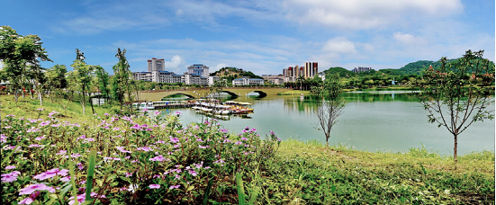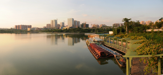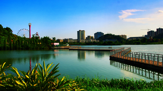 湖心岛景观改造于2014年11月开始动工,于2015年4月底建成开放,是一个绿色生态环境,让市民拥有一个自然生态的城市休闲绿地。岛上设有体验中心、游泳池、体育馆、两栋样板房、停车场等,整体面积53360㎡。