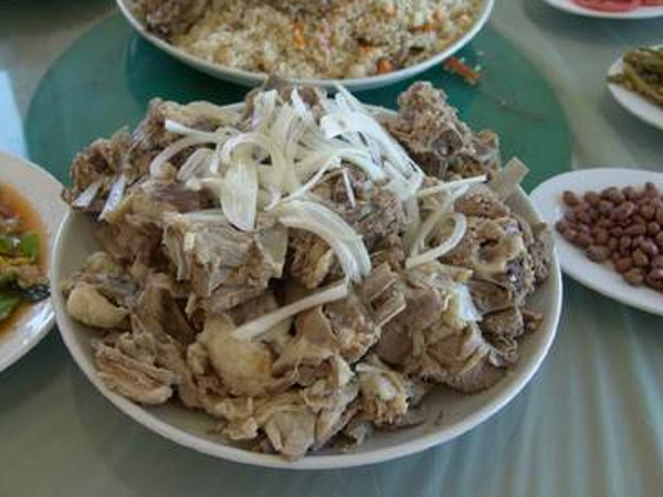 在甘肃,东乡族的手抓羊肉是名物,深受人们的喜爱,好客的东乡人,生活再穷再简单,每逢佳节或宾客临门,待客最隆重的仪式便是宰羊,手抓羊肉在宴席上是必不可少的。上手抓羊肉和吃手抓羊肉也非常讲究。要将带骨羊肉剁成二指宽的长条或块状,放入大盘之内,众人围坐而食之。胸茬和肋条肉最为鲜美,最为珍贵,先要敬呈给贵客和最年长者品尝。