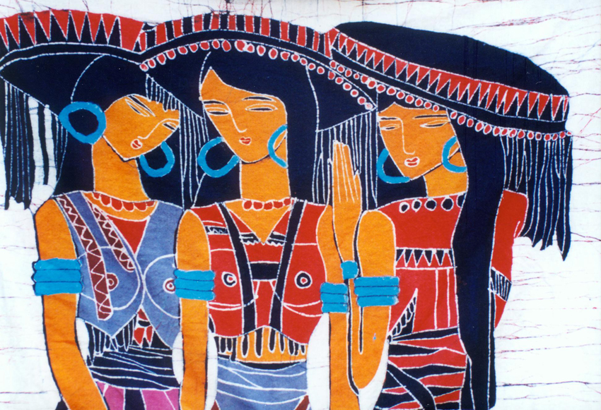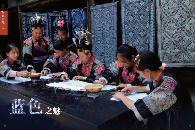 蜡染是贵州省丹寨县、安顺县、织金县苗族世代传承的传统技艺。 丹寨县、安顺县及织金县是以苗族为主体的多民族聚居区,在长期与外界隔绝的艰苦环境中,这里的居民逐渐形成了自给自足的生活方式,古老的蜡染技艺因此得以保留下来。按苗族习俗,所有的女性都有义务传承蜡染技艺,每位母亲都必须教会自己的女儿制作蜡染。所以苗族女性自幼便学习这一技艺,她们自己栽靛植棉、纺纱织布、画蜡挑秀、浸染剪裁,代代传承。在此状况下,这些苗族聚居区形成了以蜡染艺术为主导的衣饰装束(以上三照片由刘军提供)。