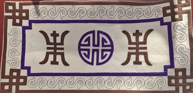 毡绣是蒙古族刺绣的一种,是游牧文化的重要组成部分,也是蒙古族集审美价值与实用价值于一体的传统手工艺代表。质朴纯粹的用色、抽象的民族图案是毡绣技艺最鲜明的特征。